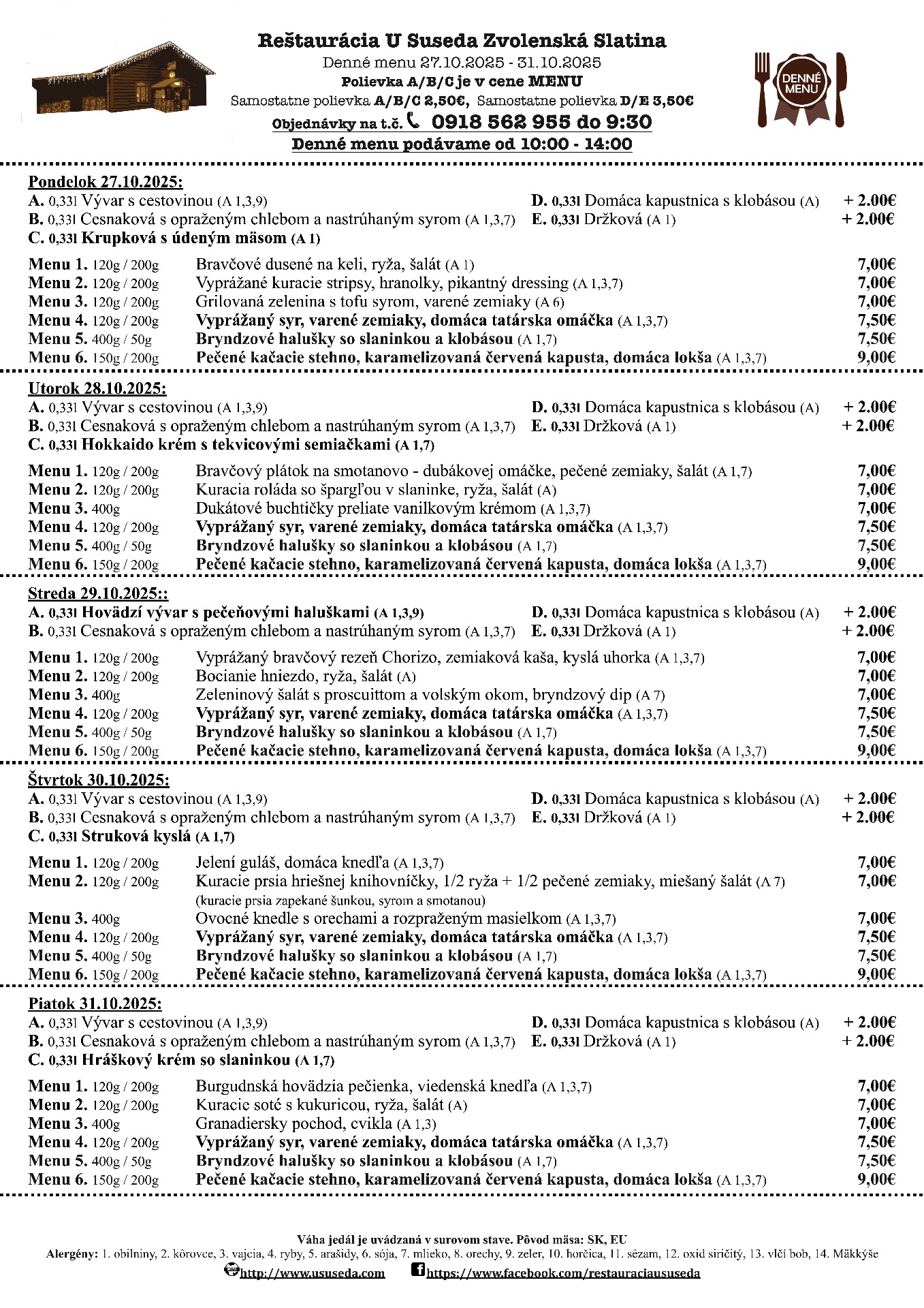 Váha jedál je uvádzaná v surovom stave. Pôvod mäsa: SK, EU